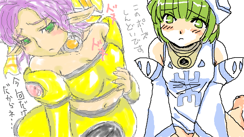 んで私がガリガリとあんにゅいなフォニュさんを描いてたわけですが、みずもにも、一応モデルの某氏にも総じて不評!