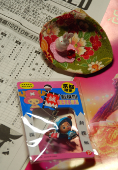 貝殻の上に小さな兎はのったミニュチュア置物と、京都限定新撰組チョッパー。
