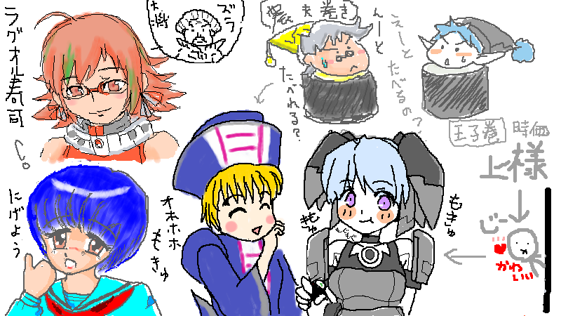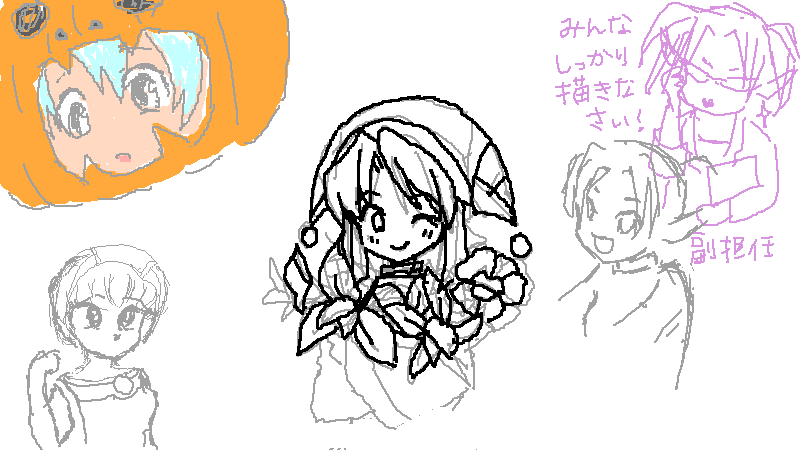 私はリコを早々と描いて、後は変な文字加えたり、UEやうぃんりーなどと絵とチャットによりやり取りをしてたりと、一番遊んでた気がしますがΣ(゚Д゚)ガーン